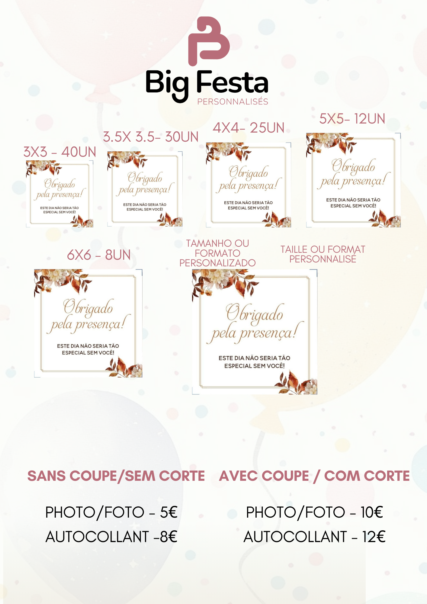 Chaque pièce est conçue selon votre thème, vos couleurs et votre identité visuelle, avec un rendu professionnel et une qualité d’impression irréprochable.